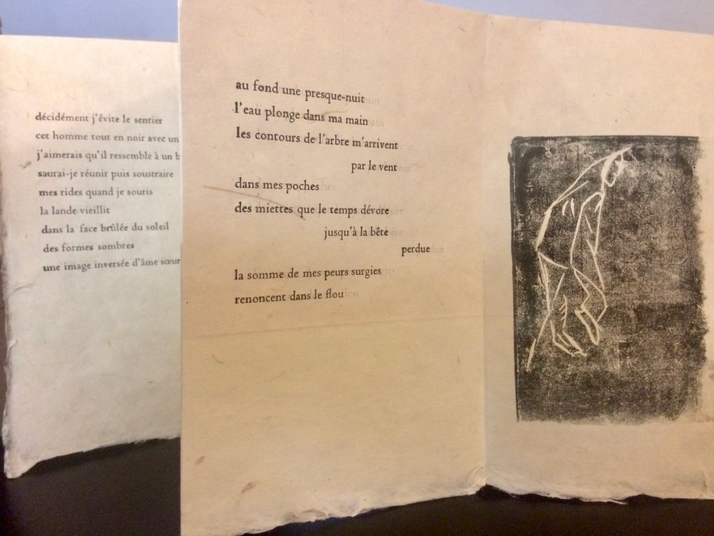 livres composés au plomb mobile, achevés d’imprimer sur les presses de Coat Malguen, dans l’atelier de l’éditrice Isabelle Sauvage